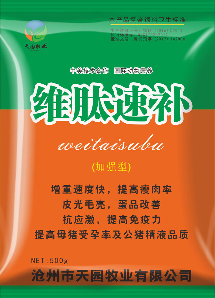 【原料组成】维生素A、维生素D3、维生素E、维生素B1、维生素B2、维生素B6、维生素B12、叶酸、烟酸、泛酸钙、蛋氨酸、赖氨酸、锰、锌、铁、铜等。