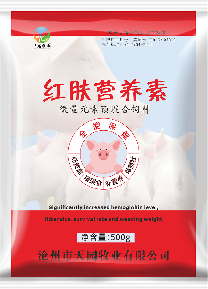 【主要成分】甘氨酸铁、卟啉铁等【产品功能】适用于仔猪缺铁性贫血。【用法用量】后备母猪:6月龄开始至配种后10天,按0.8-1%比例,拌料饲喂;怀孕后期母猪:怀孕80-114天,按0.8-1%比例,拌料饲喂;泌乳母猪:按1-8%比例,拌料饲喂。【不良反映】按规定剂量使用,暂未见不良反应。【规格含量】500g。