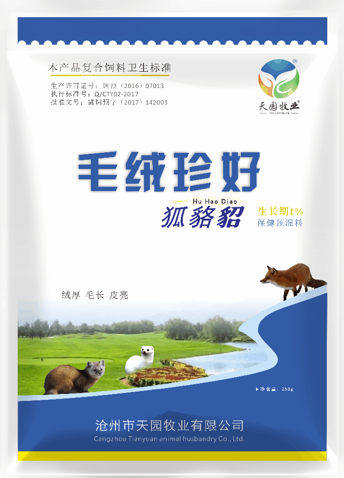 2、针对皮毛焦燥干枯、不光亮的,狐、貉每天每袋喂300只,貂500只。