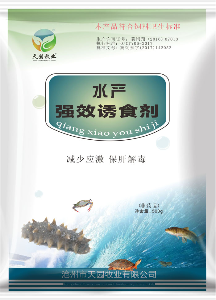 【主要成分】DMPT—二甲基-β-乙酸噻亭、维生素B2、氧化三甲胺【性 状】白色或浅黄色结晶粉,易潮解,溶于水,不溶于有机溶剂。用法用量:本品可以加入各种形式摄食的饲料,如预混料、浓缩料等,范围液不限于水产饲料,也包括钓饵。将本品直接或间接加入均可,只要诱食剂能和饲料混合均匀即可。【推荐用量】鱼:500g拌料200kg 虾蟹:500g拌料100kg【包装规格】500克/袋,30袋/件